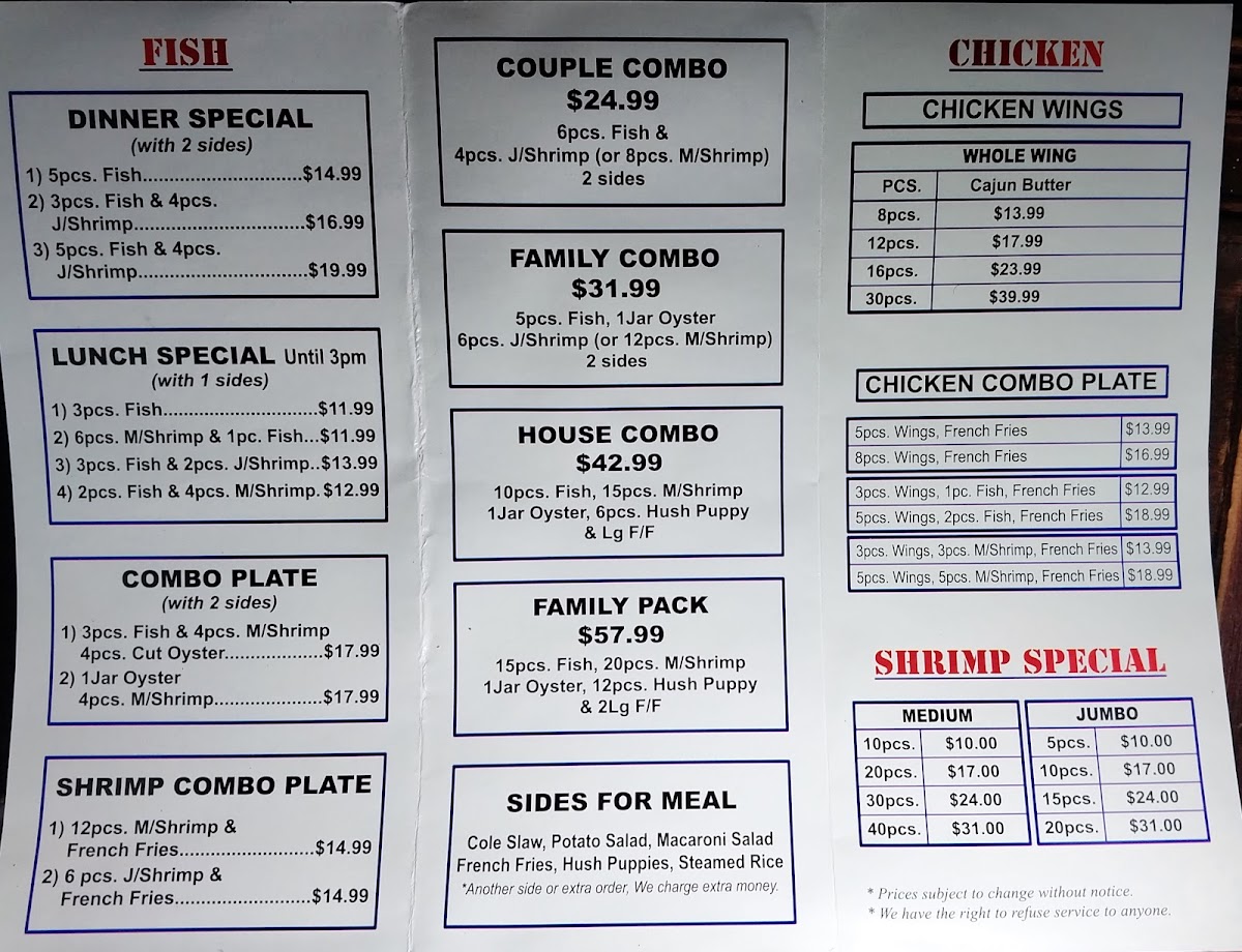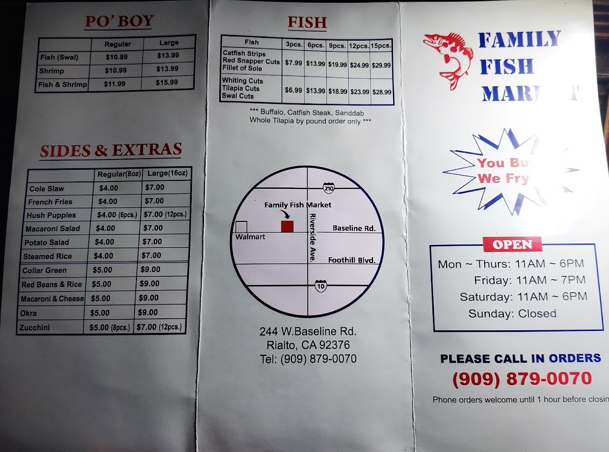 The menu at Family Fish Market Rialto offers a straightforward, no-frills selection centered around fresh, reliably prepared seafood. It’s the kind of place where casual, comforting meals are the mainstay—perfect for a relaxed lunch or dinner that feels familiar and satisfying without fuss.